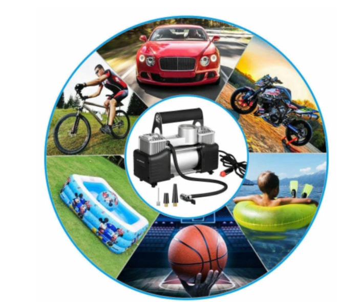 Kipulizia matairi hiki cha umeme kinafaa kwa kupuliza aina nyingi za matairi, ikiwa ni pamoja na matairi ya SUV, trekta na magari mengine. Pia kinaweza kutumika kupuliza matairi ya baiskeli, matairi ya magari, pamoja na mipira ya michezo, ili kukidhi mahitaji yako mbalimbali. 🚗🚲⚽✨