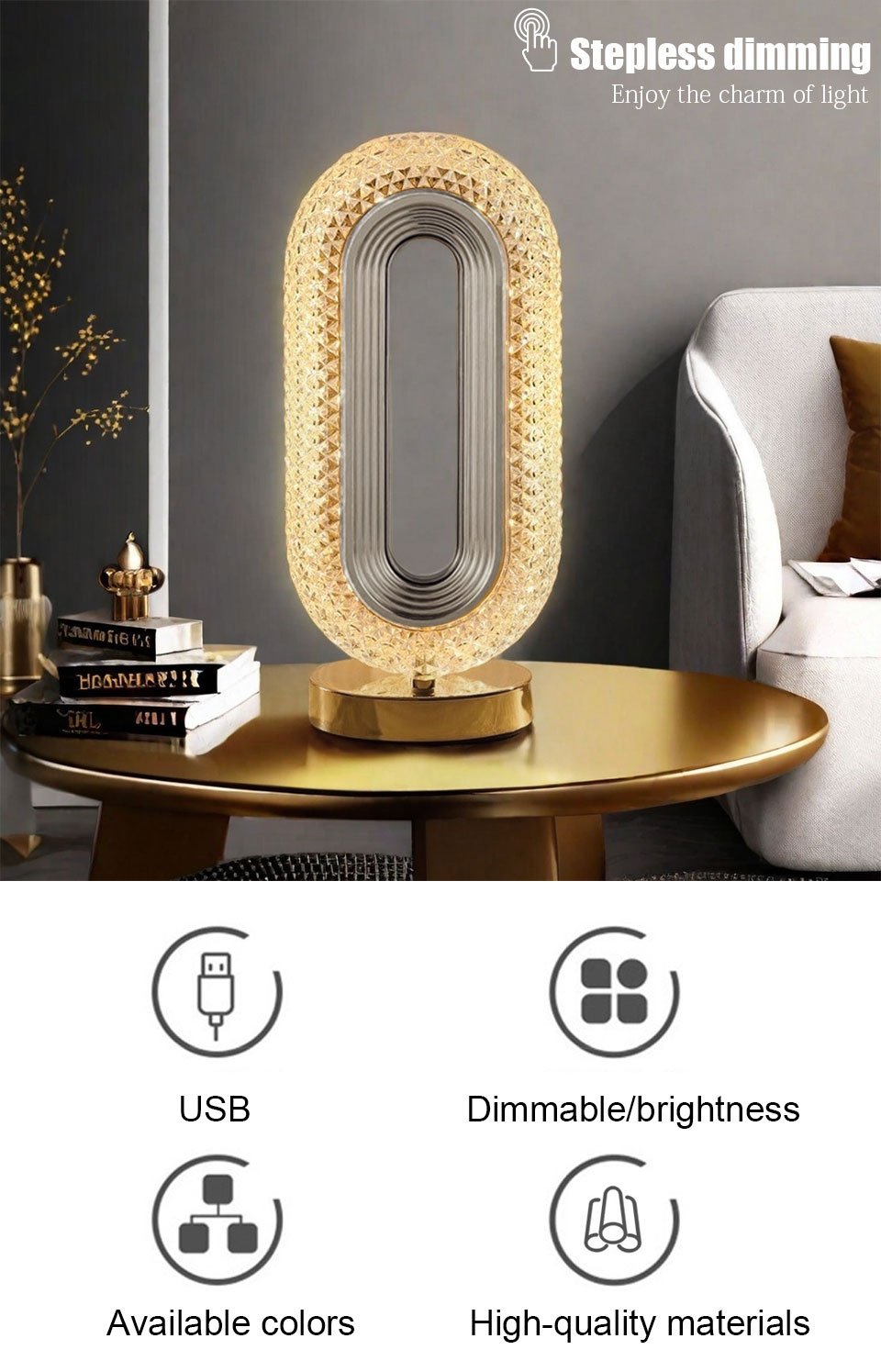 Add a Touch of Luxury to Your Room with the Crystal Touch Lamp.