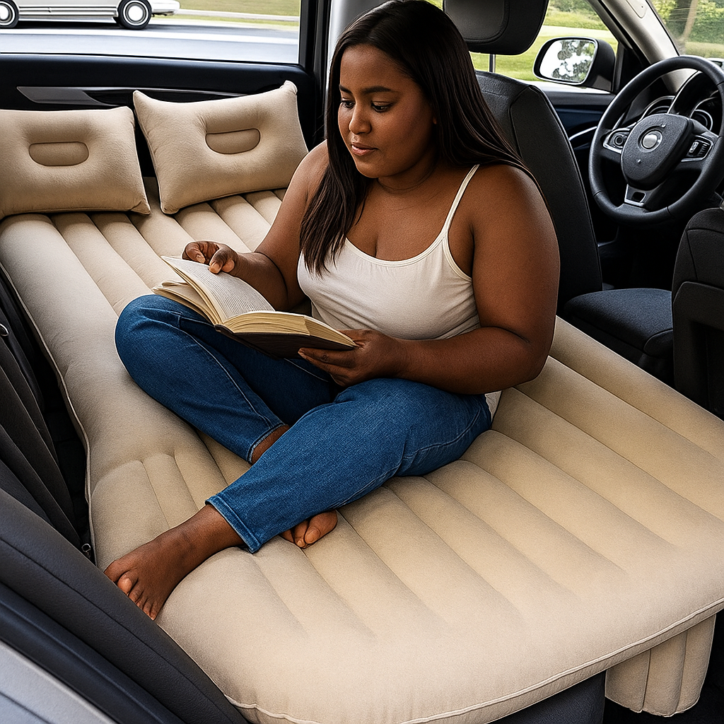 Turn your car into a comfortable resting space with this inflatable PVC flocked mattress. Specially designed to fit the back seats of cars, SUVs, and other vehicles, it ensures a comfortable and restful sleep while traveling. Perfect for road trips, camping, or long breaks, this foldable mattress is your ultimate travel companion for maximum comfort anywhere you go.