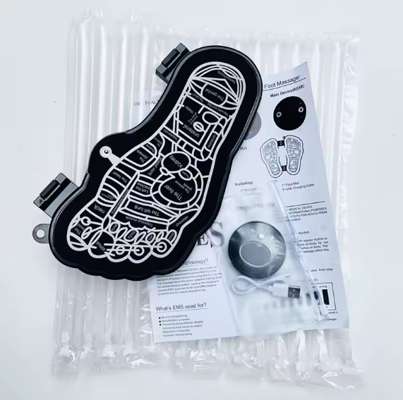 Jiburudishie kwa raha kuu na kifaa chetu cha EMS Massage Electric Foot Massager Pad. Kilichoundwa kwa faraja na urahisi wa hali ya juu, kifaa hiki cha ubunifu kinakuletea uzoefu wa spa moja kwa moja nyumbani kwako. Jisikie manufaa laini ya tiba ya umeme ikichanganywa na ujumuishaji wa massage ya mguu ili kufurahia tiba ya kufufuka baada ya siku ndefu.