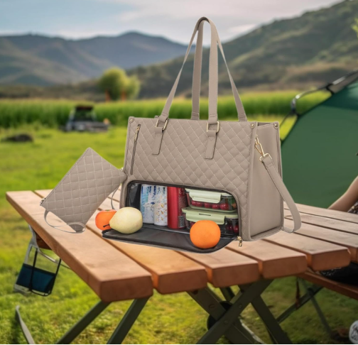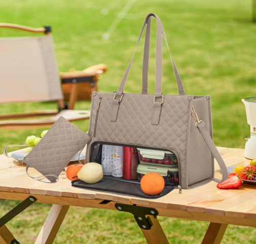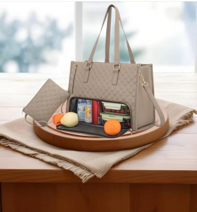 Begie la chakula cha mchana kwa wanawake, begi la kompyuta ya inch 15.6 lenye sehemu ya insulation ya chakula cha mchana, begi kubwa lenye mpangilio wa quilting na pochi, linalofaa kwa biashara, kazi, chuo, ofisi, na matumizi ya kawaida.