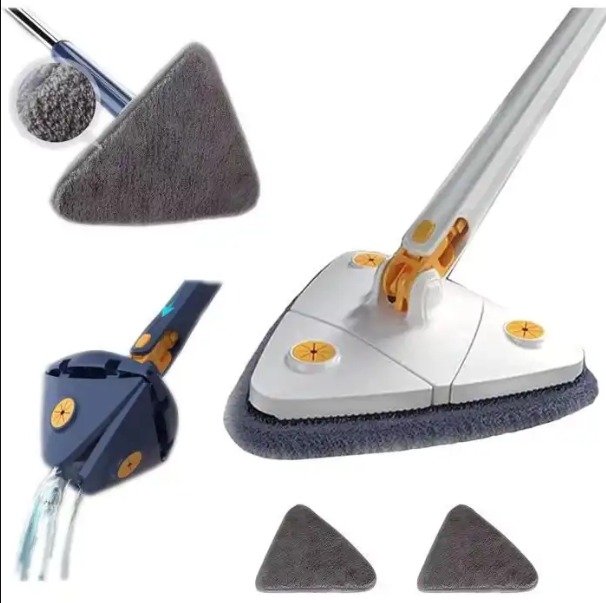 Fagio la Usafishaji la Pembetatu Linalozunguka 360°, Usafishaji wa Haraka kwa Mzunguko, Hukauka Haraka, Lenye Mpini wa Kustarehesha Unaoweza Kutenganishwa – Linafaa kwa Sakafu za Aina Zote, Dari, Madirisha, Magari, Kisafishaji cha Vioo – Muundo wa Pembetatu Unaookoa Nafasi, Bora kwa Nyumbani, Ofisini na Nje.