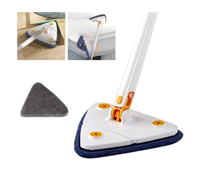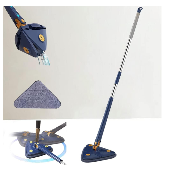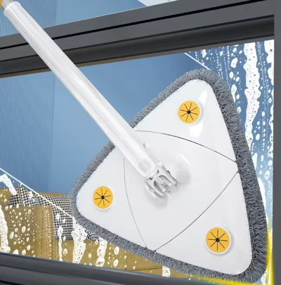 Fagio la Usafishaji la Pembetatu Linalozunguka 360°, Usafishaji wa Haraka kwa Mzunguko, Hukauka Haraka, Lenye Mpini wa Kustarehesha Unaoweza Kutenganishwa – Linafaa kwa Sakafu za Aina Zote, Dari, Madirisha, Magari, Kisafishaji cha Vioo – Muundo wa Pembetatu Unaookoa Nafasi, Bora kwa Nyumbani, Ofisini na Nje.